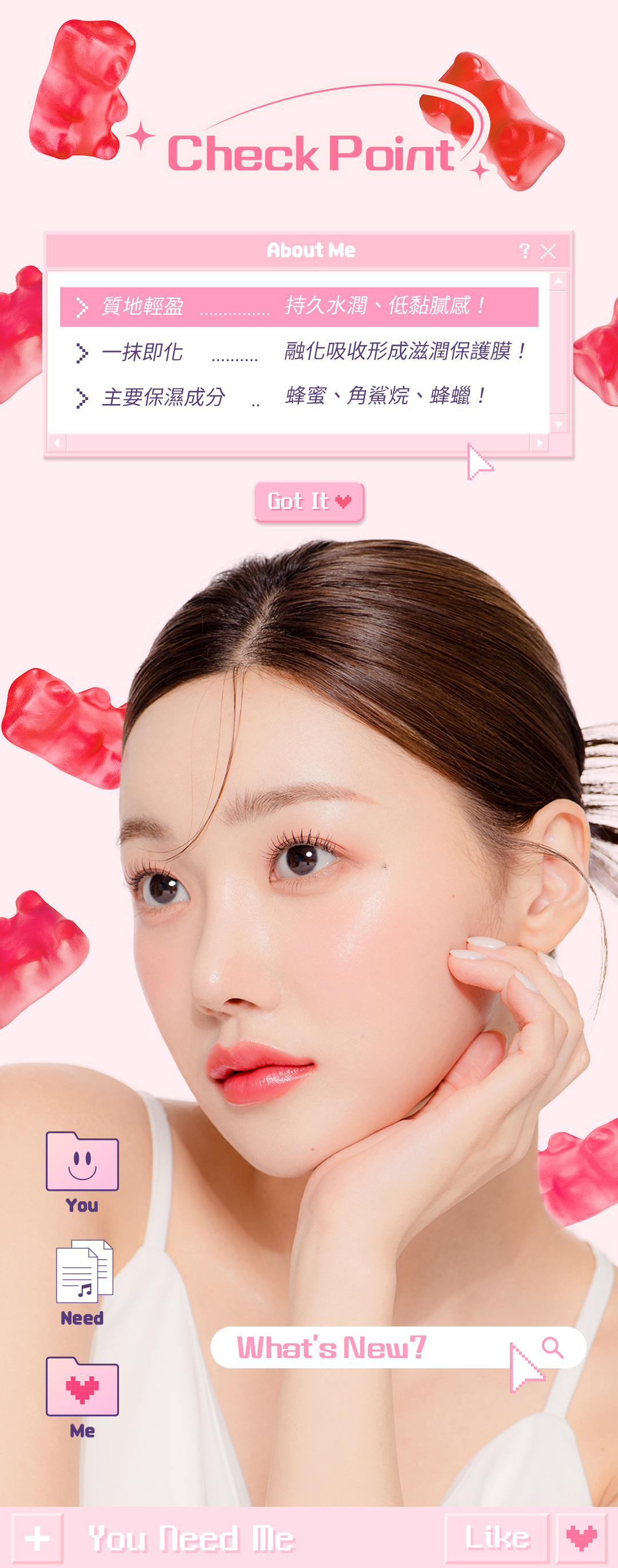 ▶ 一抹即化,持久水潤感,形成滋潤保護膜!