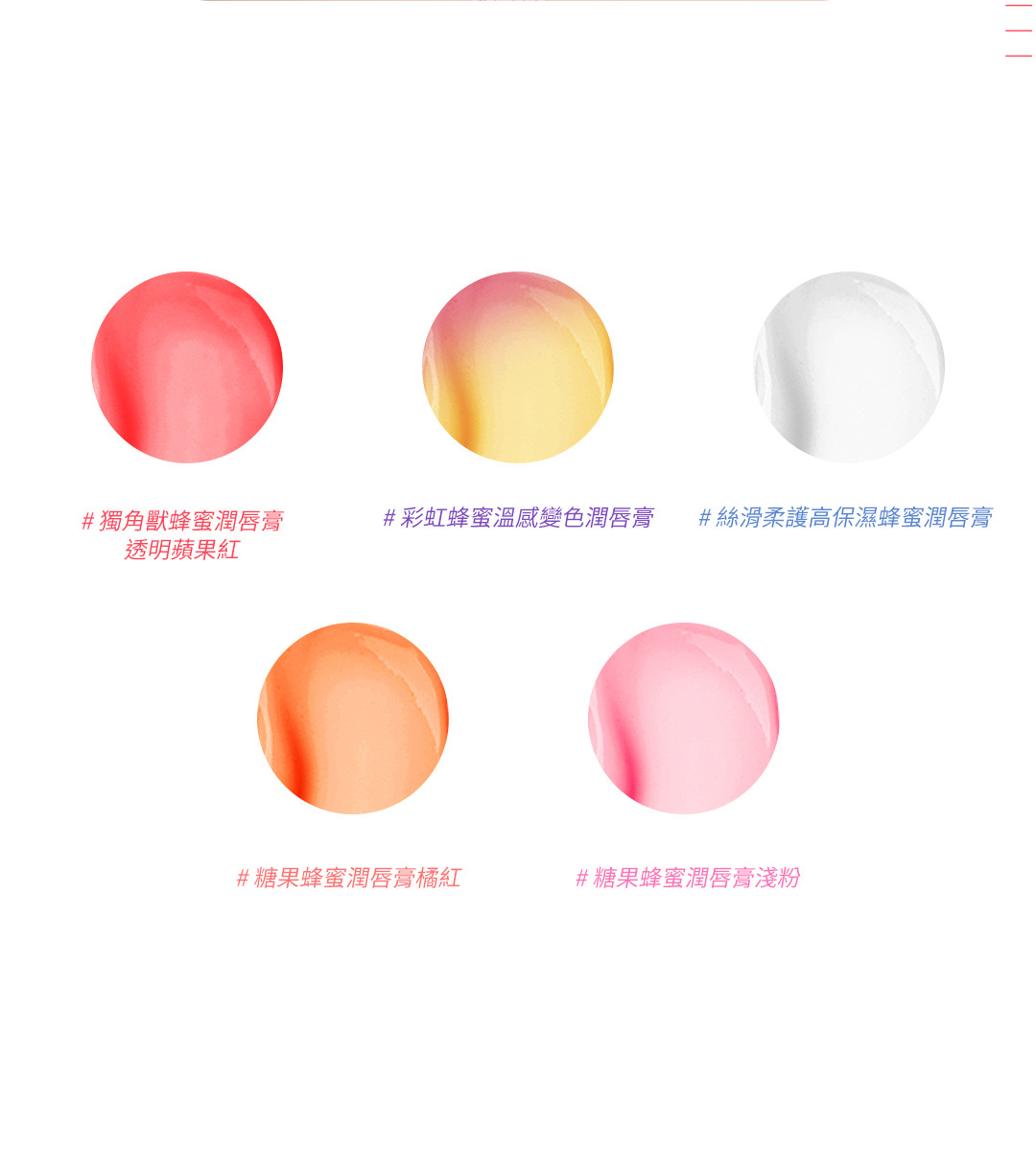 ▶ 麥盧卡蜂蜜:賦予唇部保濕力,滋潤唇部預防乾燥。滋養撫平嘴唇細紋,防止嘴唇乾裂。