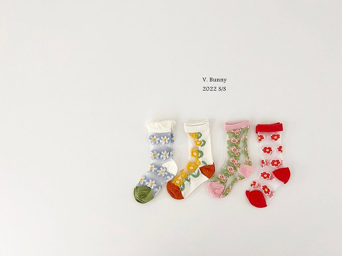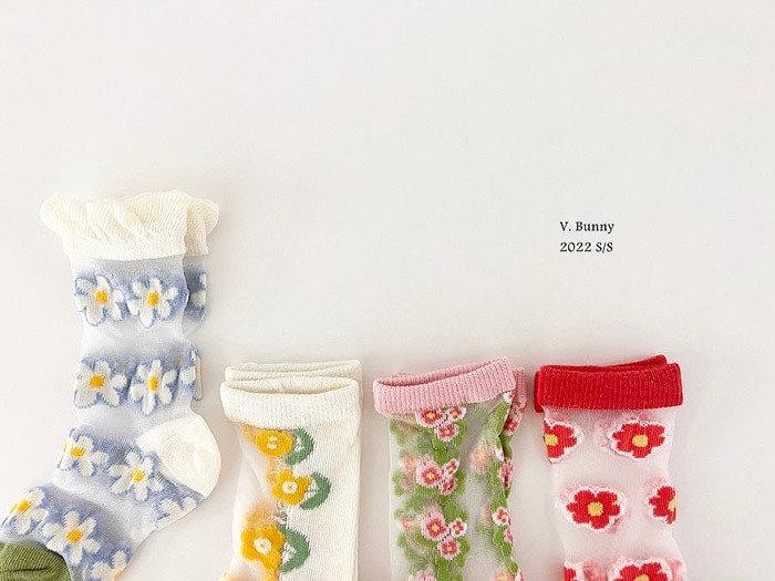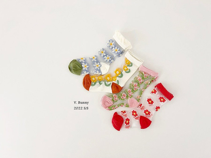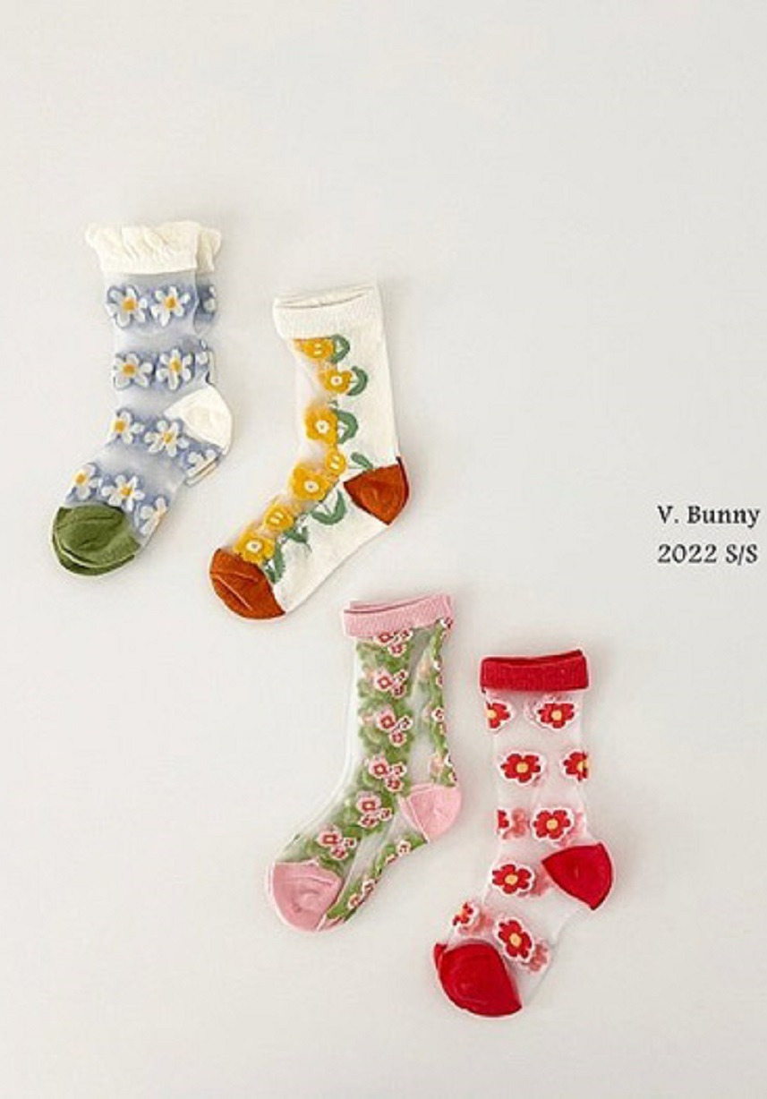 正韓│復古花花透明紗襪組(4入)/13~15cm