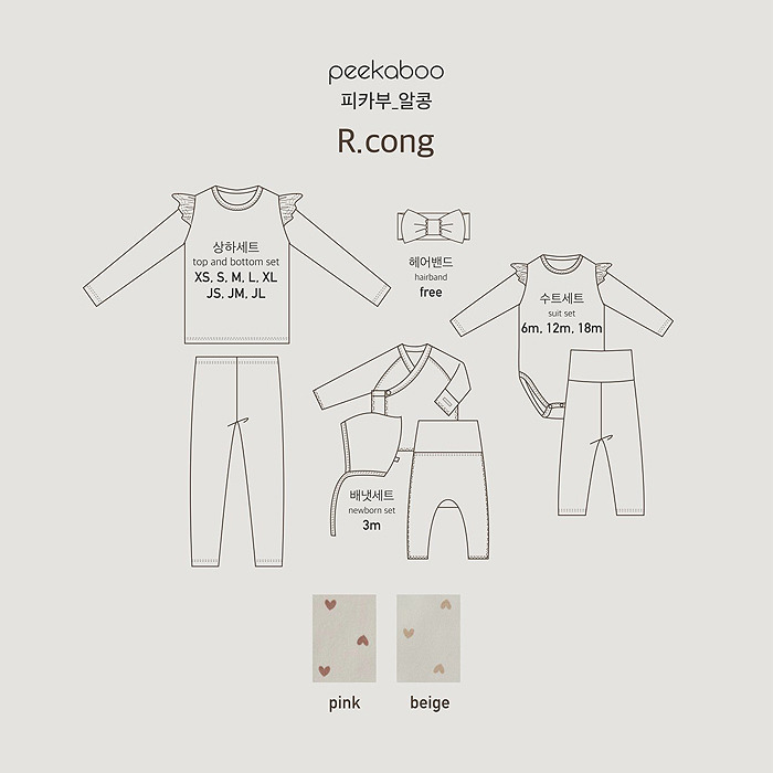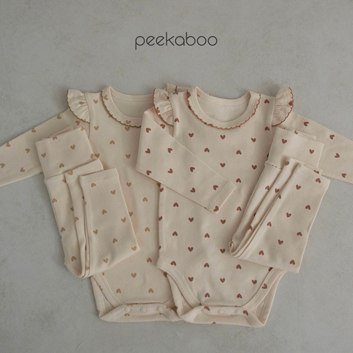 正韓│愛心荷葉邊包屁衣套裝/粉紅色 18m