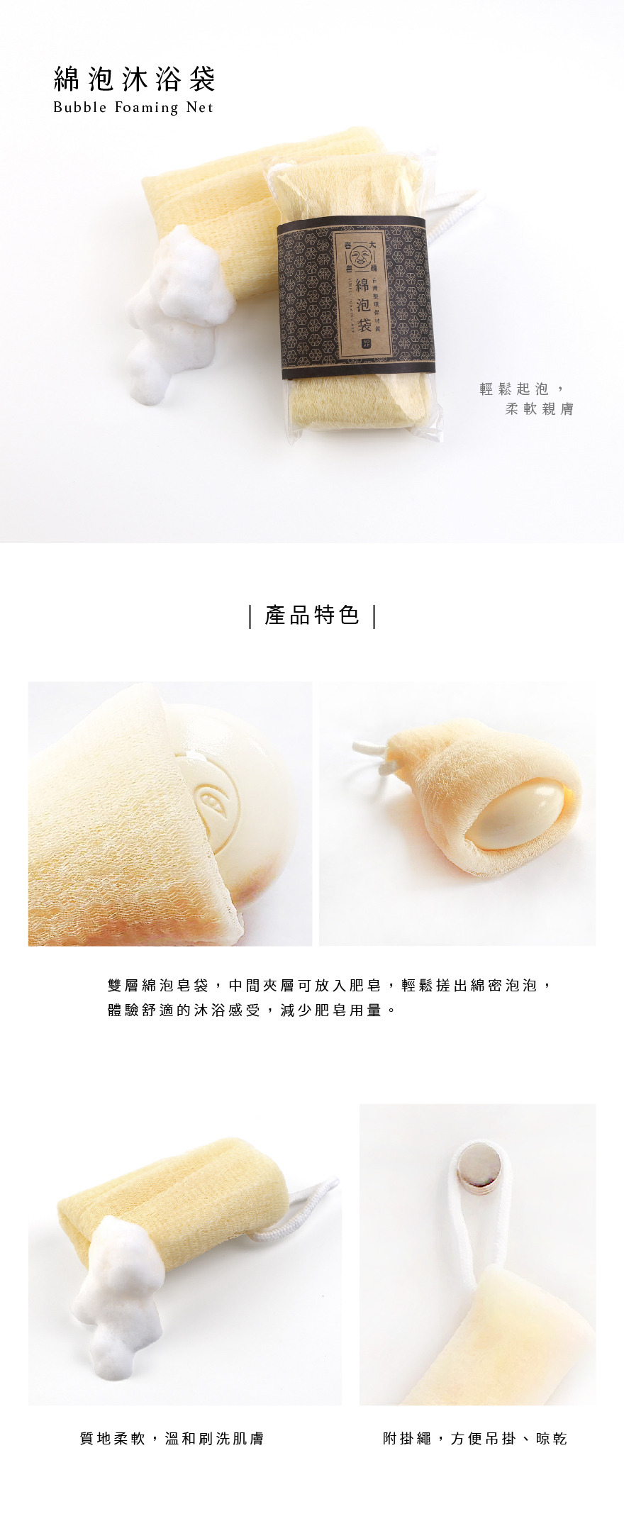 商品特色:幫助起泡,沐浴清潔